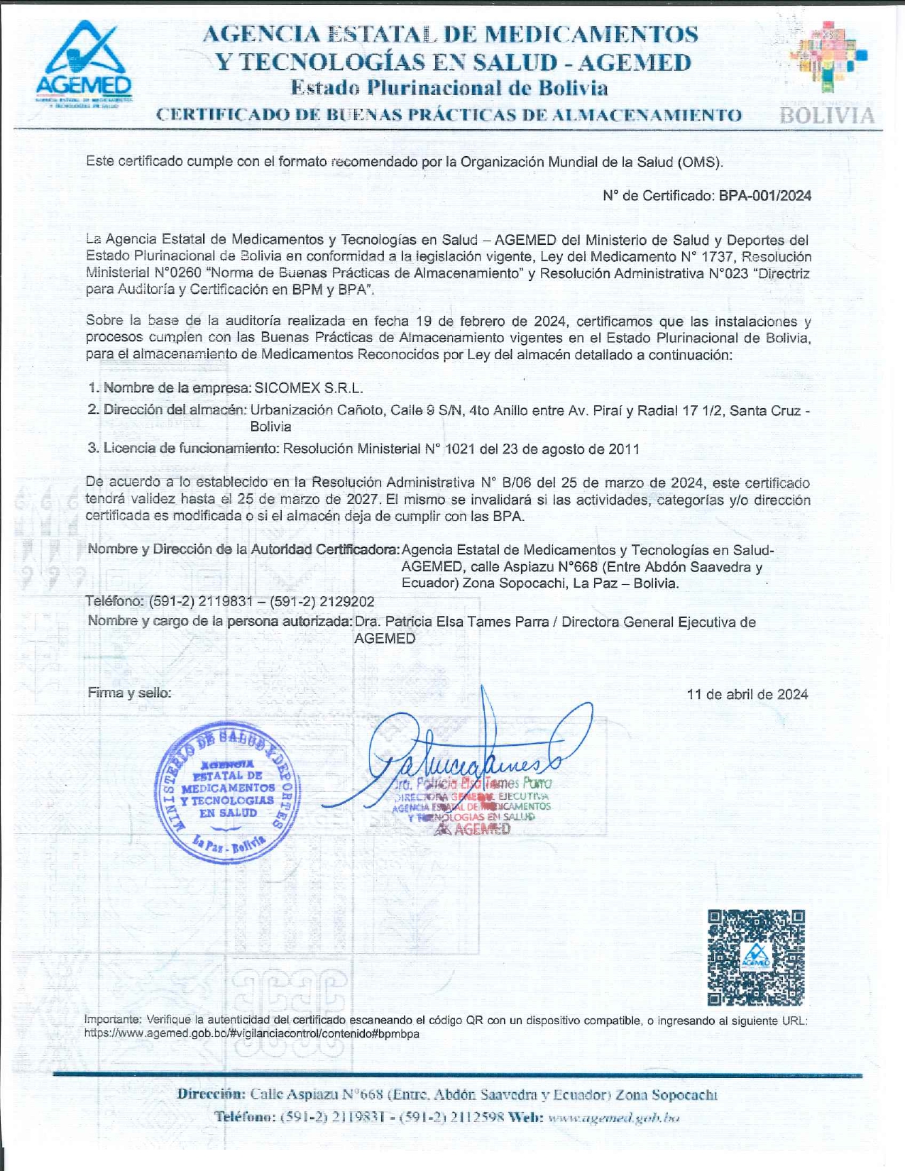 Certificado Buenas Prácticas de Almacenamiento